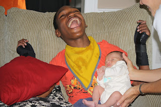 Uncle Jeremy getting a turn to hold his new nephew